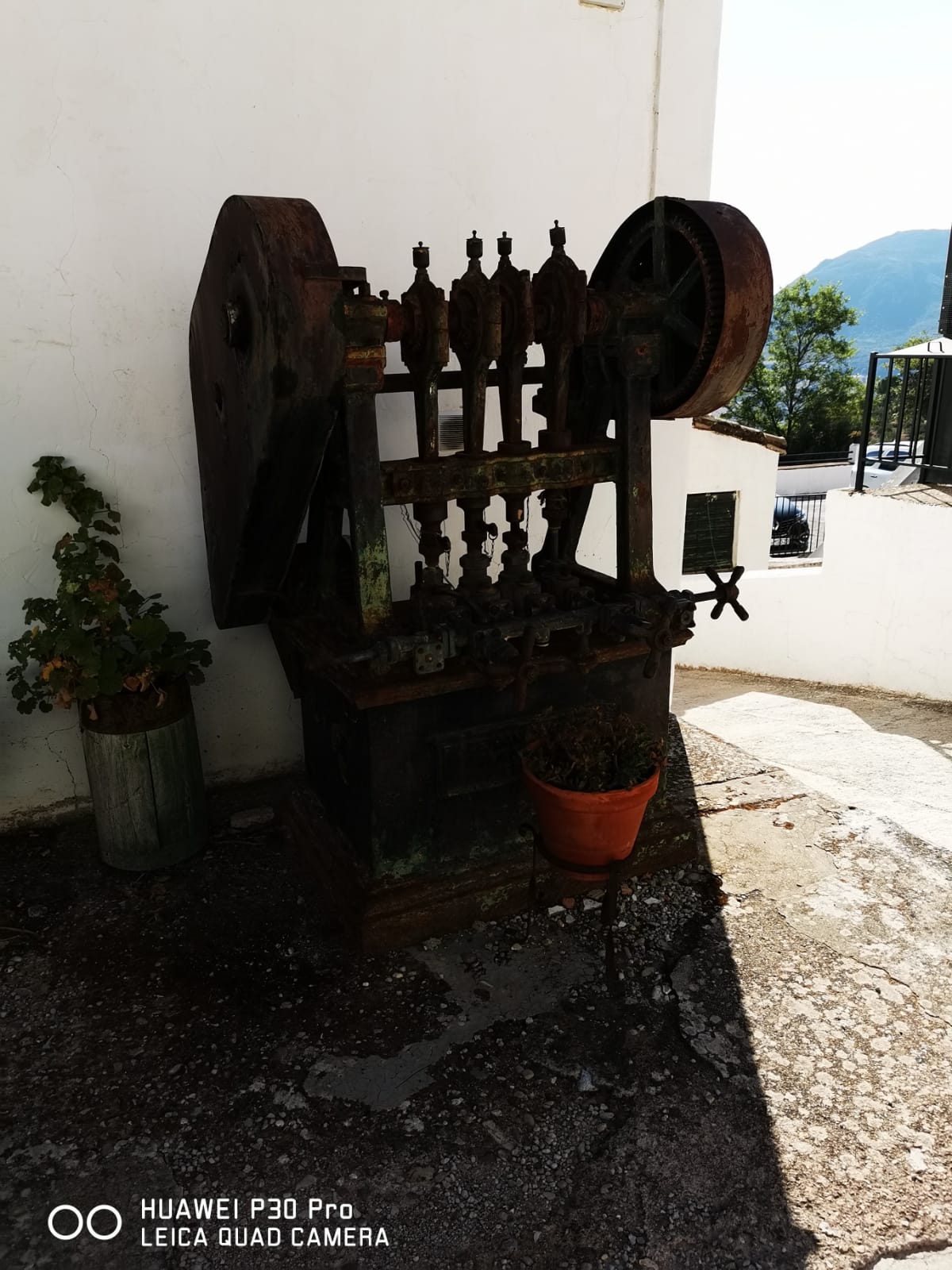 Die 1755 errichtete Mühle ist eine der ganz wenigen in Spanien, die noch heute ausschließlich auf traditionelle und mechanische Weise Olivenöl gewinnt. Der Besuch begann mit einer Führung durch die Produktionsstätte. Ernte- und Verarbeitungszeitzeit der Oliven ist der Spätherbst/Frühwinter, so dass zum Zeitpunkt des Besuchs die Ölpressen nicht in Betrieb waren. Der Besitzer der Mühle erklärte uns gleichwohl sehr anschaulich den aufwändigen Produktionsprozess. Uwe half beim Übersetzen.