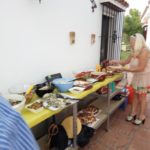 Nach kurzer Vorstellung der Gäste konnte das Fest beginnen. Unterstützt durch einen Gast mit Grillmeisterqualitäten wurde der Grill angeschmissen und schon nach kurzer Zeit waren die ersten Bratwürste fertig. Gefolgt von Nackensteaks, Hähnchenspießen und Shrimps! Merklich wurden die Gespräche leiser und man konnte wieder die Vögel hören
